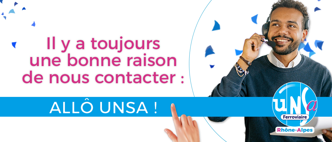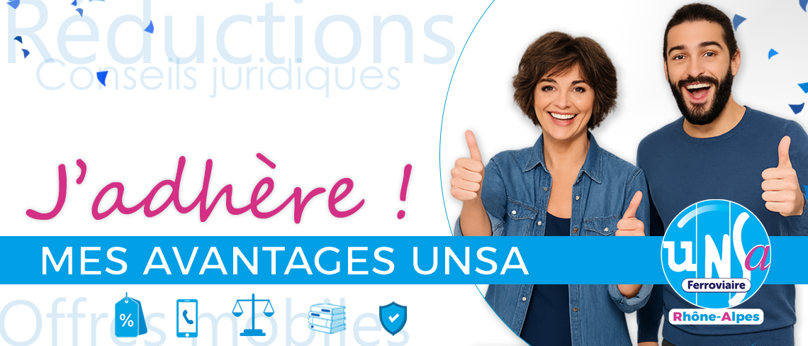 UNSA Ferroviaire Rhône Alpes Slide 1Slide Allo UnsaSlide adhésionSlide 2 DERNIÈRES ACTUALITÉS Tous les agents SNCF Voyageurs SNCF Réseau Communiqué de presse SNCF Réseau Découvrir toutes nos actualités CSE ICI CSE Octobre 2025 ICI CSE Septembre 2025 Flash CSE août 2025 Flash CSE juillet 2025 Flash CSE juin 2025 Découvrir toutes nos PARUTIONS LES VIDÉOS DU MOIS Janvier 2026 Décembre 2025 Novembre 2025 VOIR TOUTES NOS VIDEOS NOS ENGAGEMENTS Défense de tous les salariés Harcèlements sexistes, sexuels et morales Égalité femmes – hommes Lutte contre toutes les discriminations Personnes en situation de handicap Lutte contre l’homophobie et la transphobie Impressions en noir et blanc MES AVANTAGES ADHÉRENT GALERIE PHOTOS