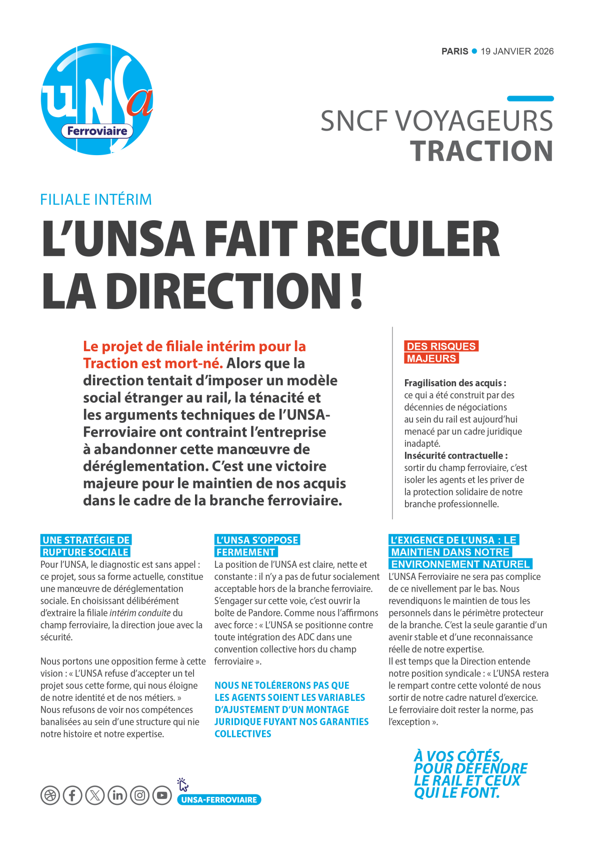 La direction voulait créer une filiale d’intérim Traction hors branche ferroviaire, synonyme de déréglementation sociale et de risques pour la sécurité.
