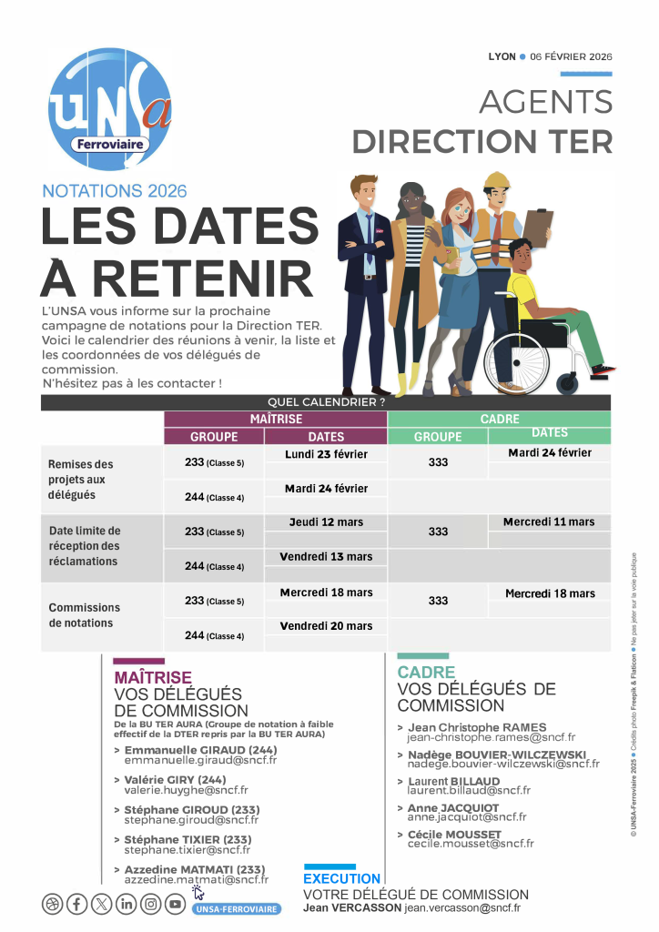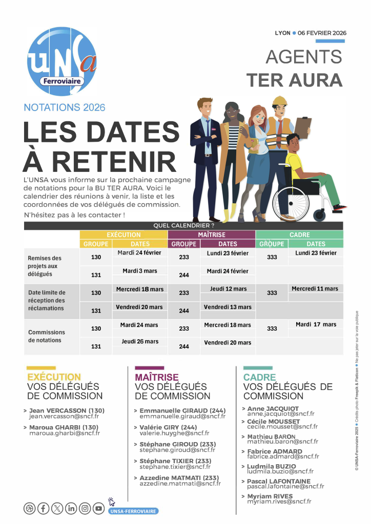 La période des notations 2026-2027 représente un moment important de reconnaissance et d’évolution professionnelle, durant lequel l’UNSA-Ferroviaire accompagne les cadres pour les informer, les conseiller et les défendre.
